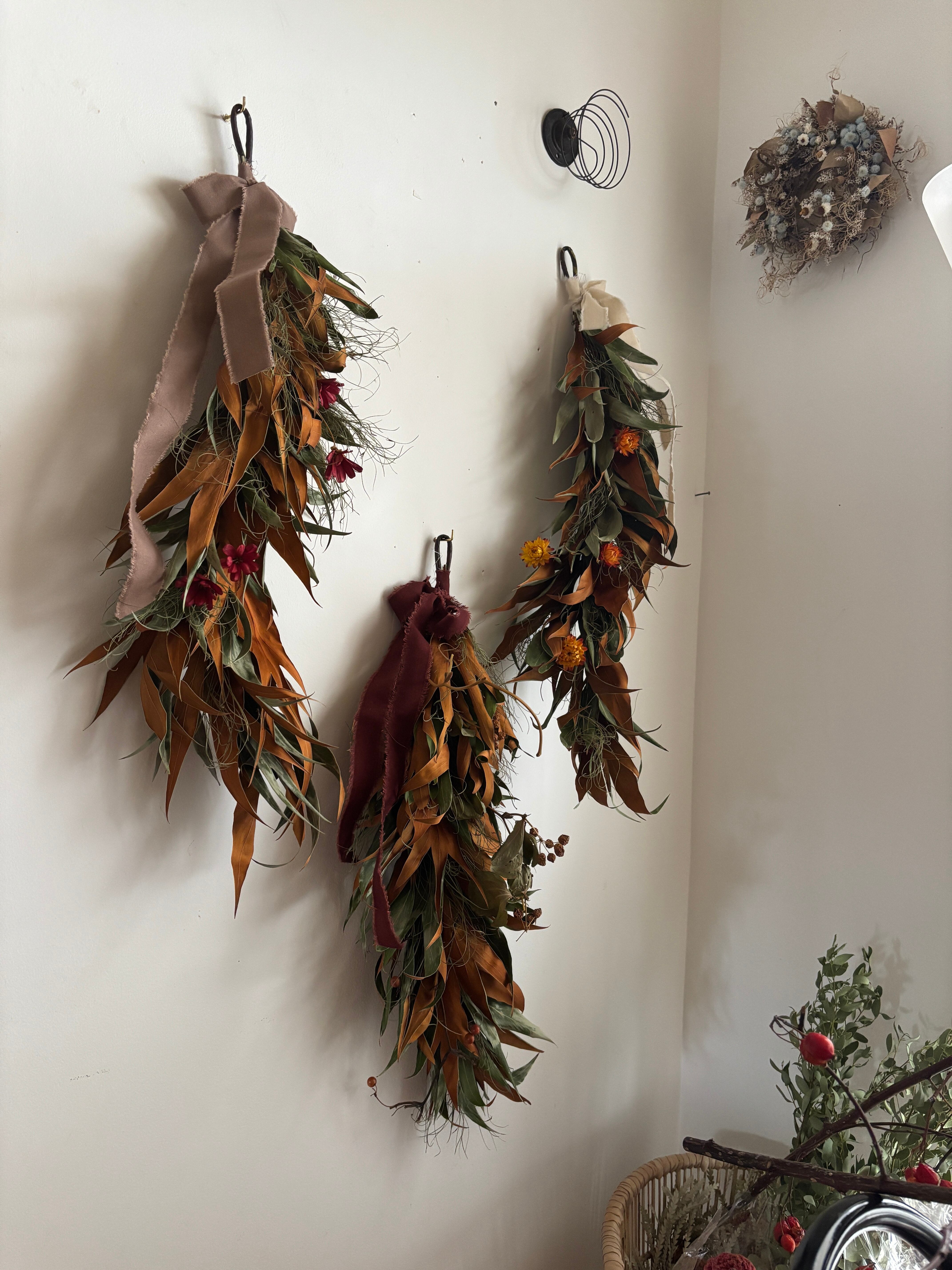 ・スワッグは、時間と共に色合いが変わることがあります。この変化を楽しんでいただけると幸いです。直射日光や高温の場所を避けることで、より美しさを保つことができます。