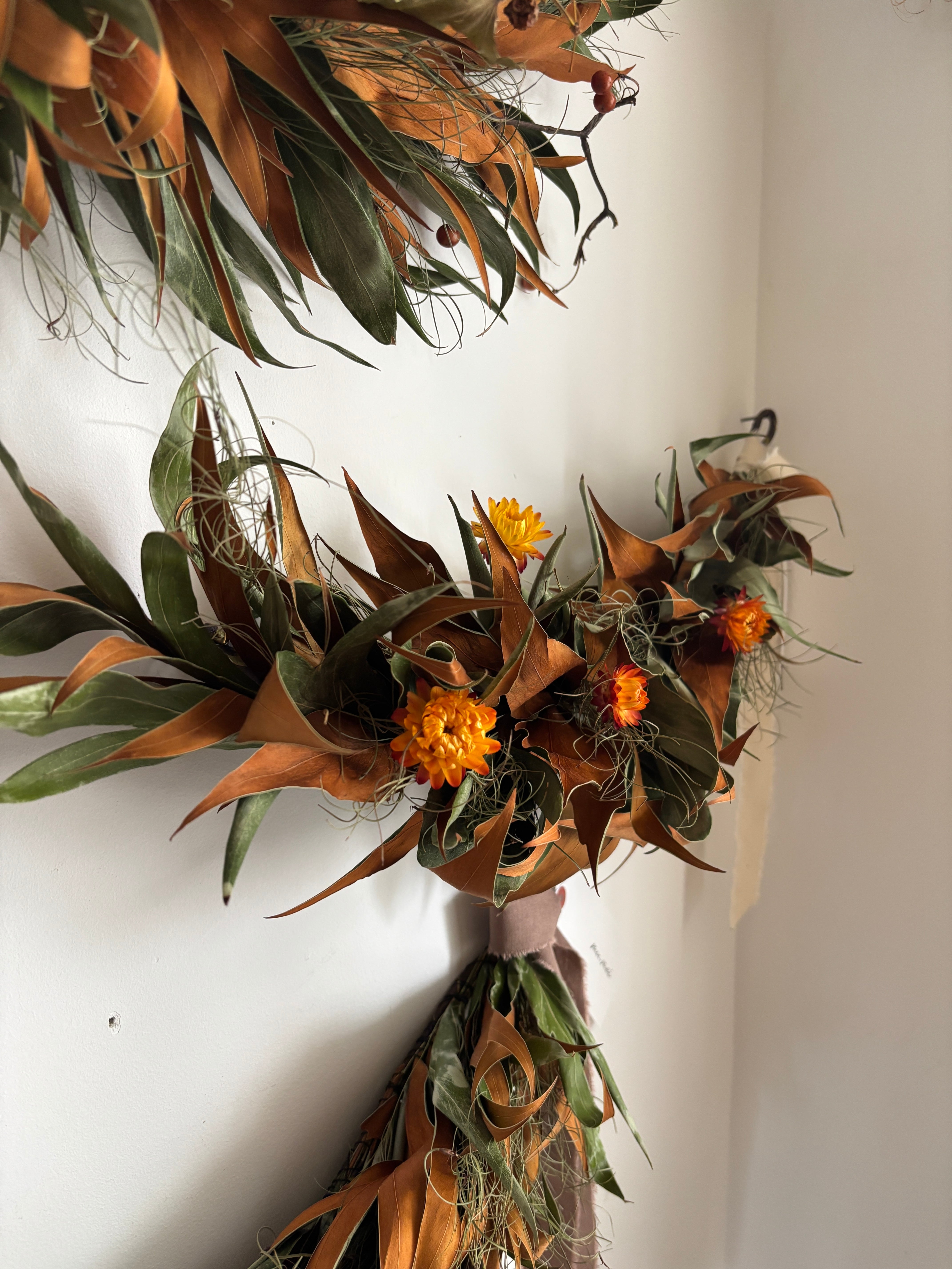 《オレンジ色が美しいグレビレアのガーランドスワッグ》