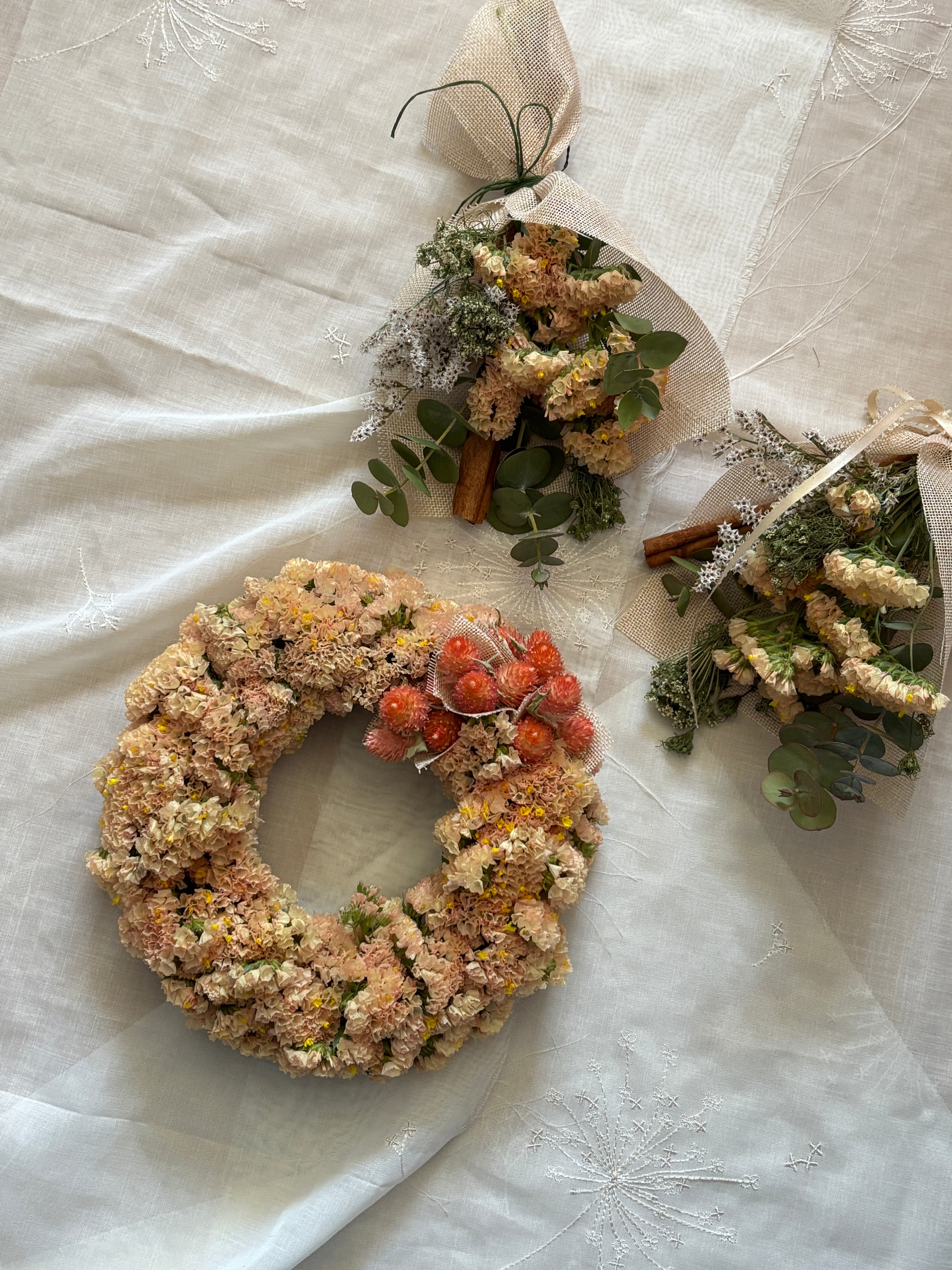 ・ドライフラワーは湿気に弱い為、なるべく乾燥した場所でお楽しみいただくのがおすすめです。また、カビの発生を防ぐため、早めの開封をお願いいたします。