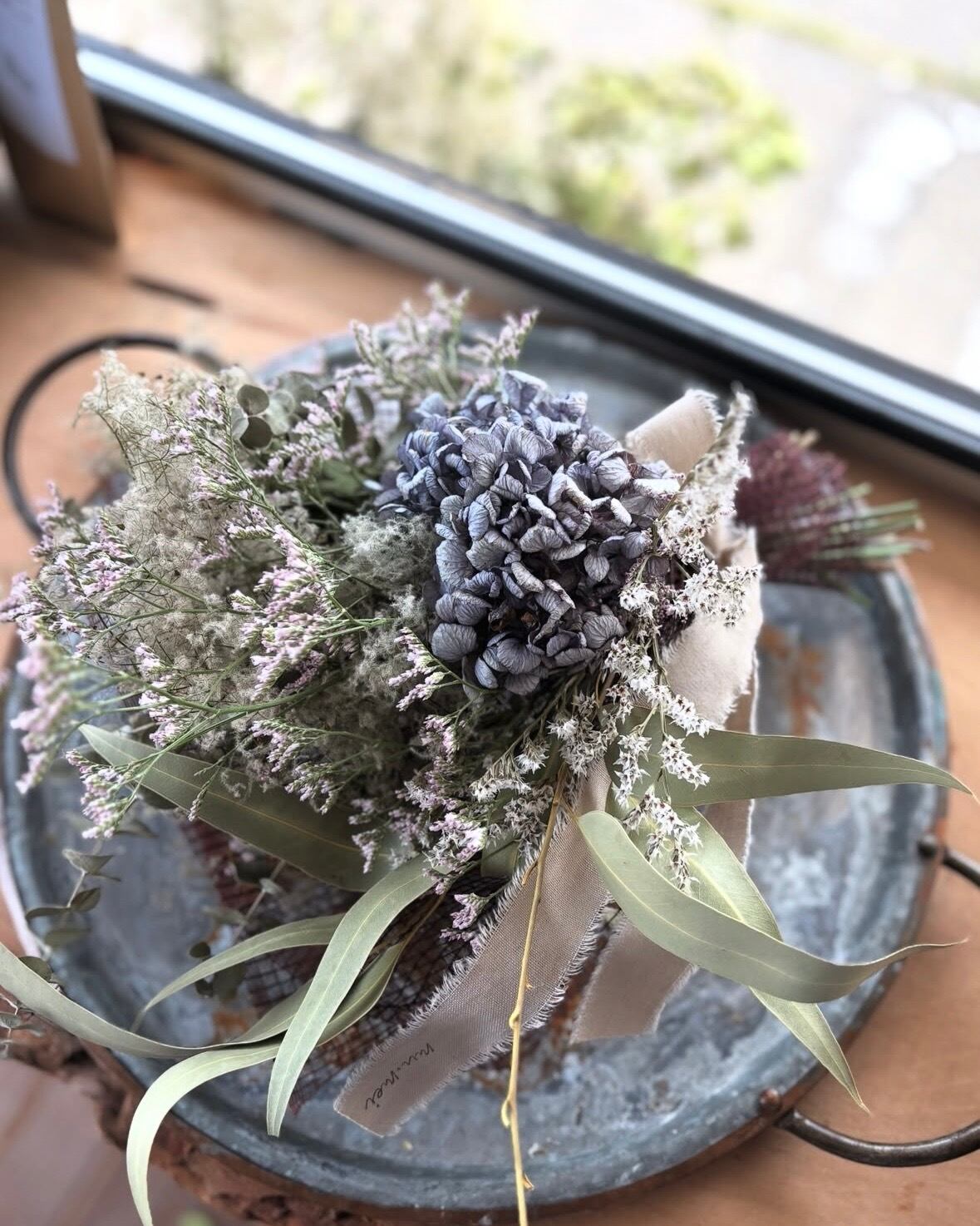・ドライフラワーの特性として、色は段々と抜けていき変化していきます。個体差はありますが、その過程もお楽しみいただけたら幸いです。直射日光や高温になる場所を避けていただくと、比較的色が長持ちいたします。